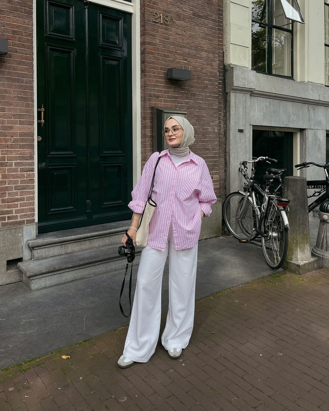 L'ensemble "Stripes" by Modessa associe un top long et modeste disponible en bleu ou rose rayé à un pantalon blanc , pour une silhouette élégante et raffinée. Ce duo sophistiqué offre un équilibre parfait entre confort et style, idéal pour une tenue distinguée en toute occasion.
