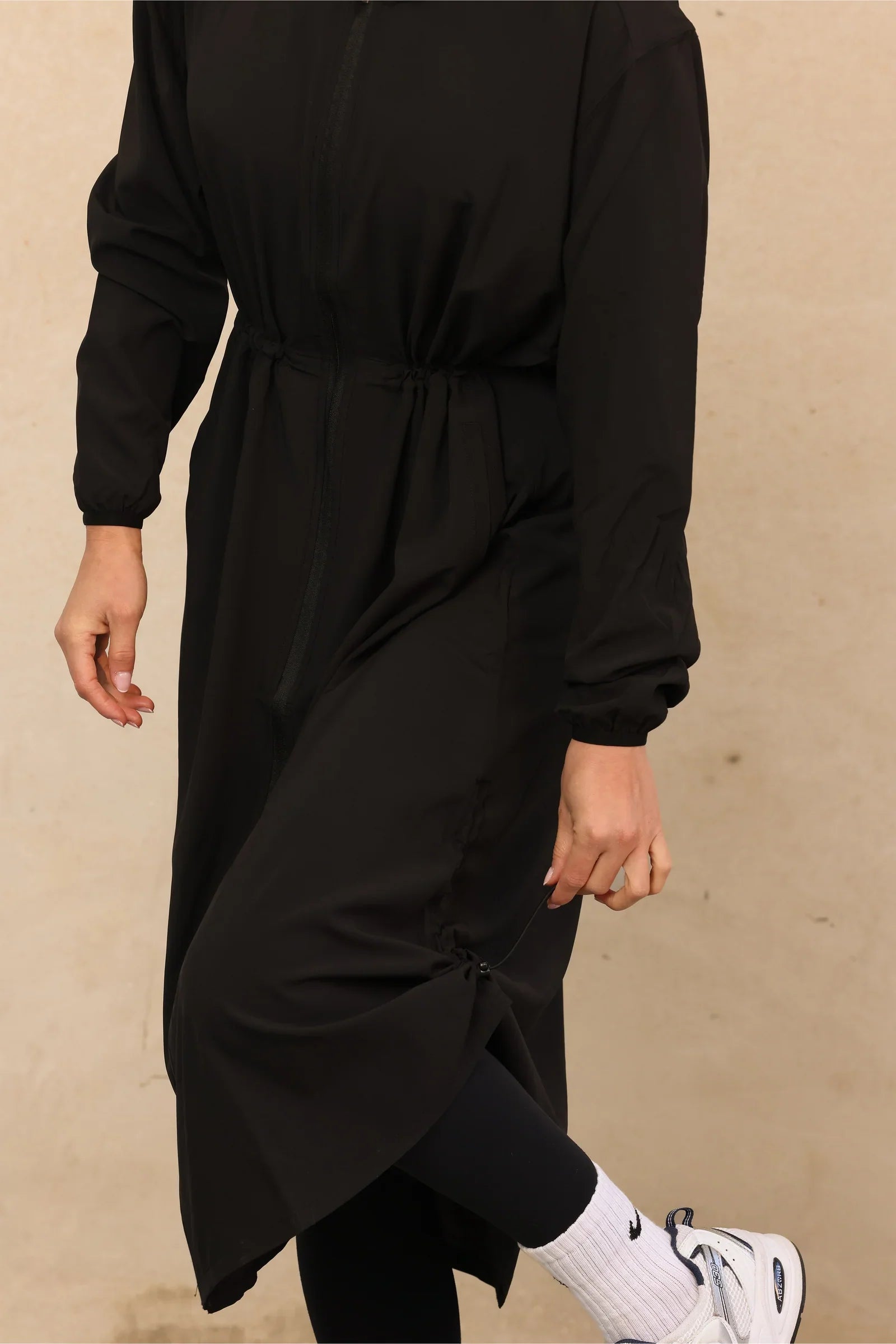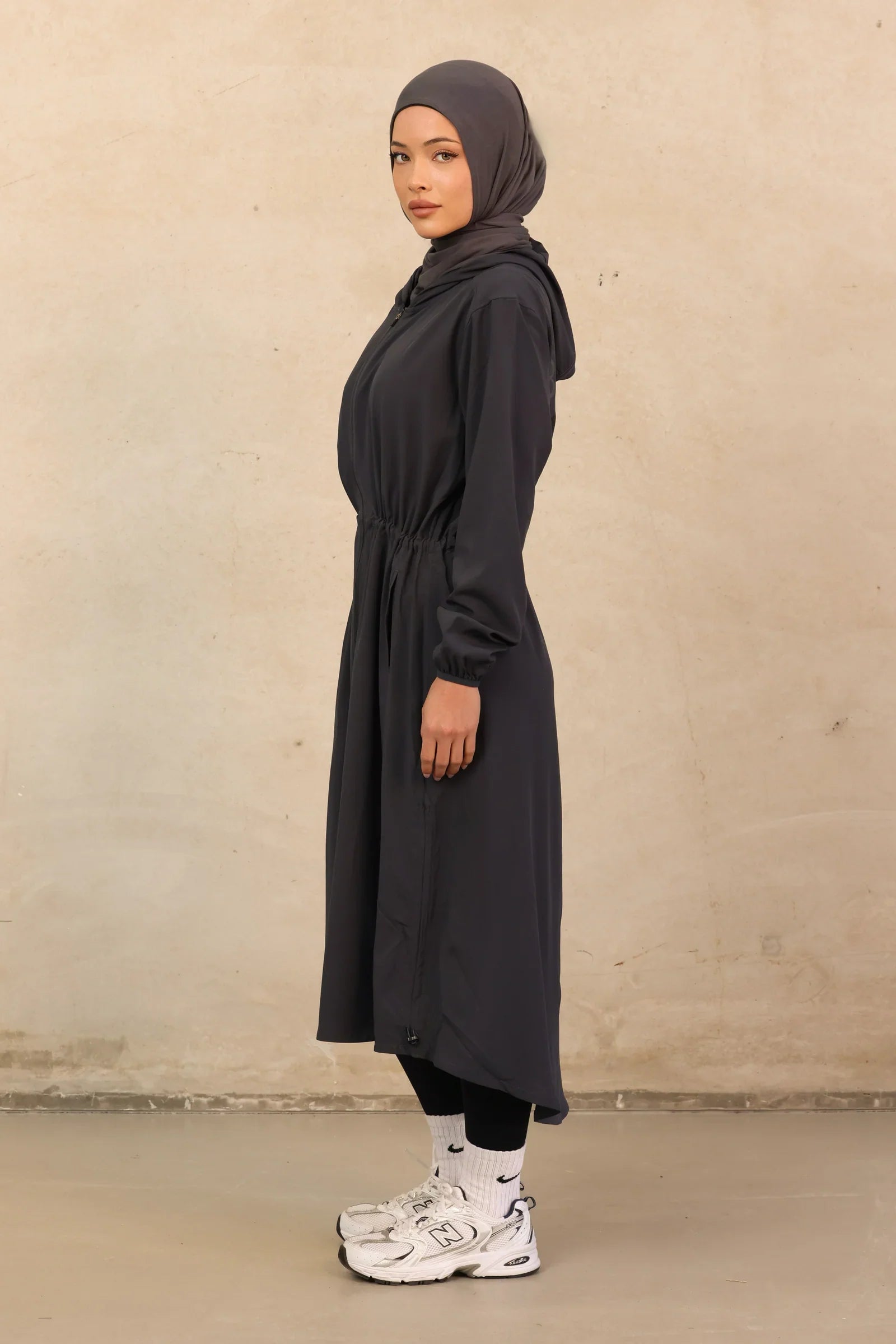 Veste Longue ActiveFit avec Capuche – Noir & Gris